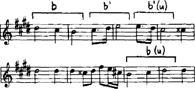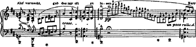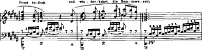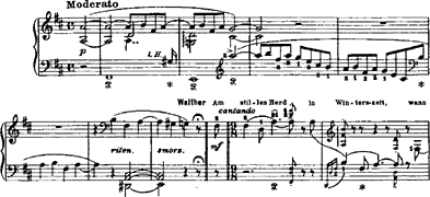 was in dem alten Buch zu lesen ist: offenbar ein Motiv von Wagner, denn der Einschub greift auf die Einleitung zurück, in der jenes aus der zweiten Gesangsphrase ("in Winterszeit") abgeleitete Motiv exponiert wird (Beispiel 10).