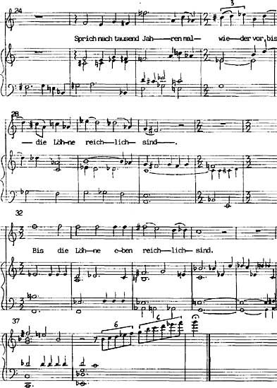 Im Hinblick auf Eislers Versuche, Zwölftontechnik und konsonante Harmonik zusammenzubringen, scheint mir diese Arie darum bemerkenswert, weil Eisler hier eine Art harmonischer Revision einer Zwölftonkomposition unternimmt. Denn ohne Zweifel macht die Chromatik nicht nur die Linienführung geschmeidiger, sondern sie führt zu einer viel zwingenderen Harmoniefortschreitung.